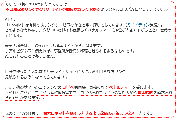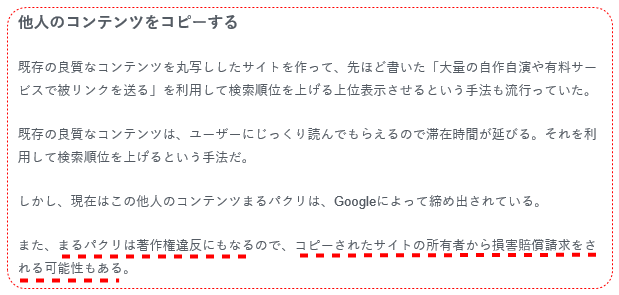 当サイトの「士業ホームページを成長させよう」のページでは著作権を侵害すると損害賠償請求されると書いています。